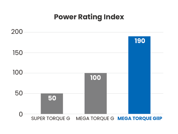 Compared to our Mega Torque G timing belt, it is possible to transmit a load that is approximately 1.9 times higher.